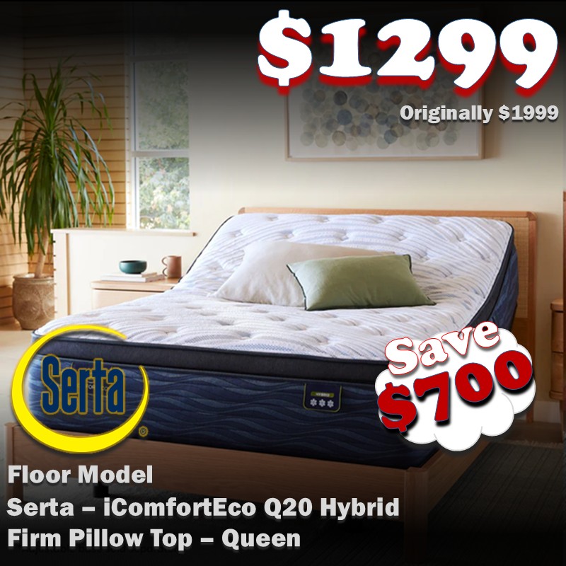 Discover the iComfortECO Hybrid Q20GL Firm Pillow Top, an eco-friendly mattress that combines comfort, support, and sustainability for a superior night’s sleep. Crafted with select eco-friendly materials, up to 70% of which are sustainable, this mattress features a hybrid construction with a CoolTemp quilted top and a revolutionary 5-Zone Support System that specifically targets pressure relief.